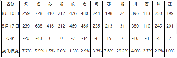 二、國內(nèi)浮法玻璃重點省份庫存統(tǒng)計(截至20230820)