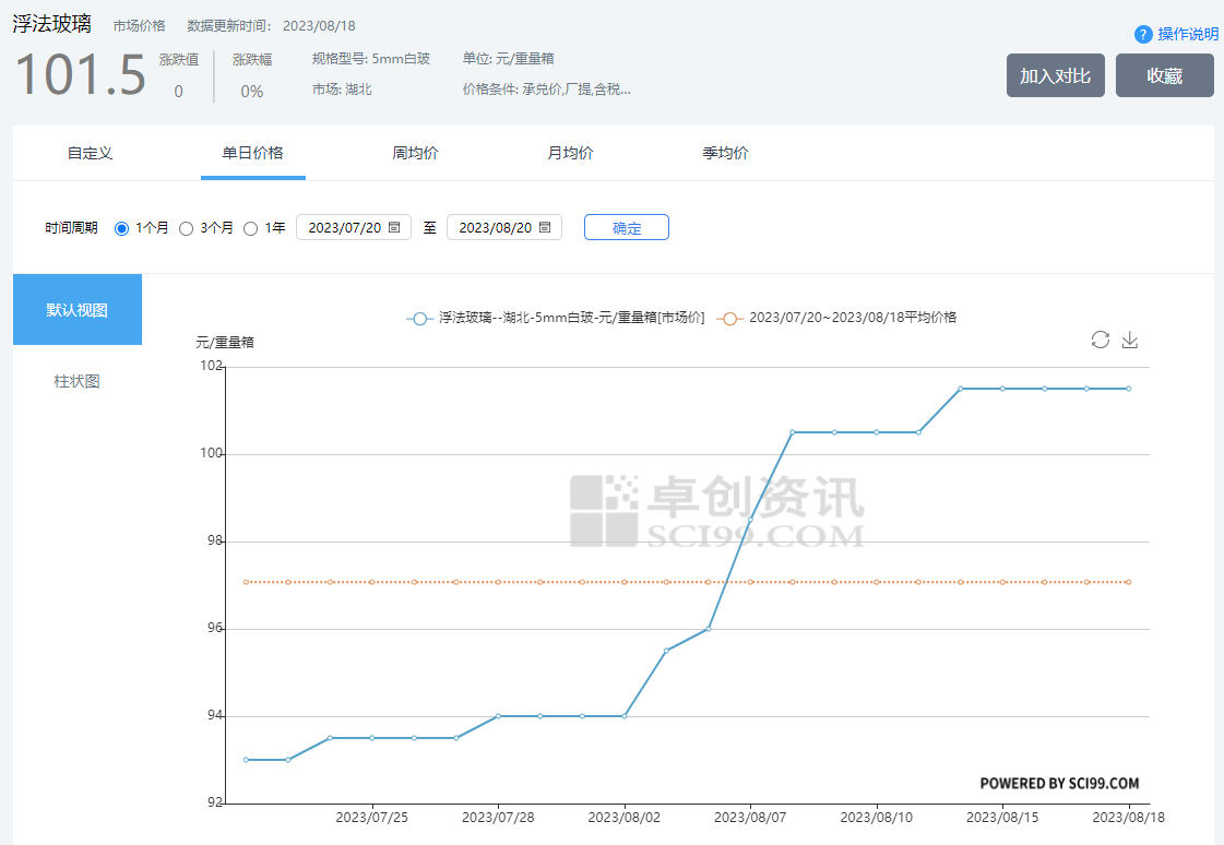 三、浮法玻璃近一月價格曲線